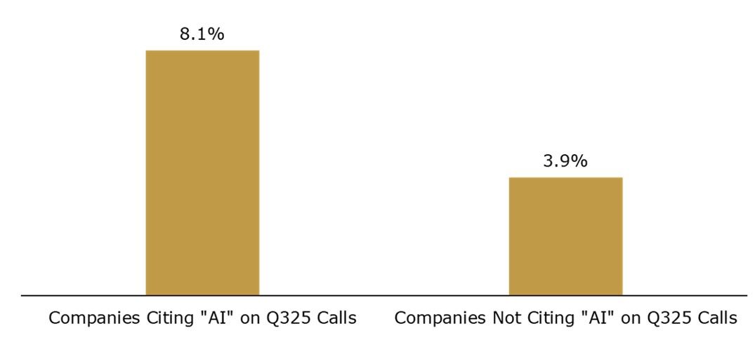 Investors are rewarding companies that are leaning into AI — or at least talking about it on earnings calls — contributing to the outperformance of certain stocks.