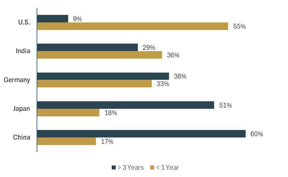 American companies have been at the forefront of developing AI, but they haven’t necessarily led when it comes to putting the technology to use. Some 55% of U.S. respondents who participated in a recent worldwide survey of engineers and executives said their companies have been using AI for less than a year. By contrast, more than half of respondents from China and Japan said their companies have been using AI for at least three years. The United States also falls short when it comes to individuals’ use of AI. It ranks 24th globally, behind Poland and Taiwan, for individual use of AI, according a Microsoft study.