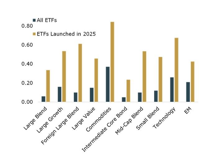 Average Expense Ratios for ETFs Launched in 2025 Compared to the Category Average